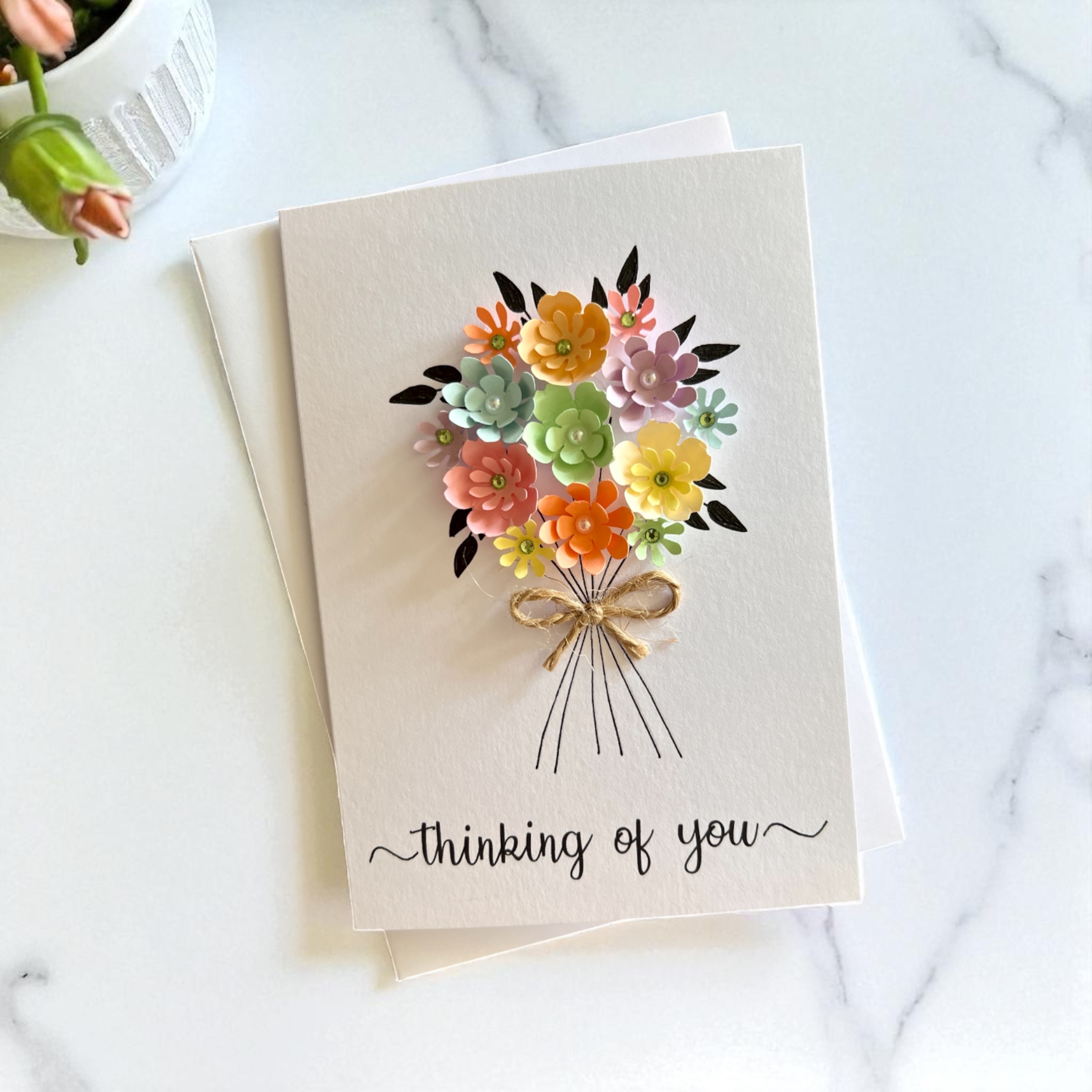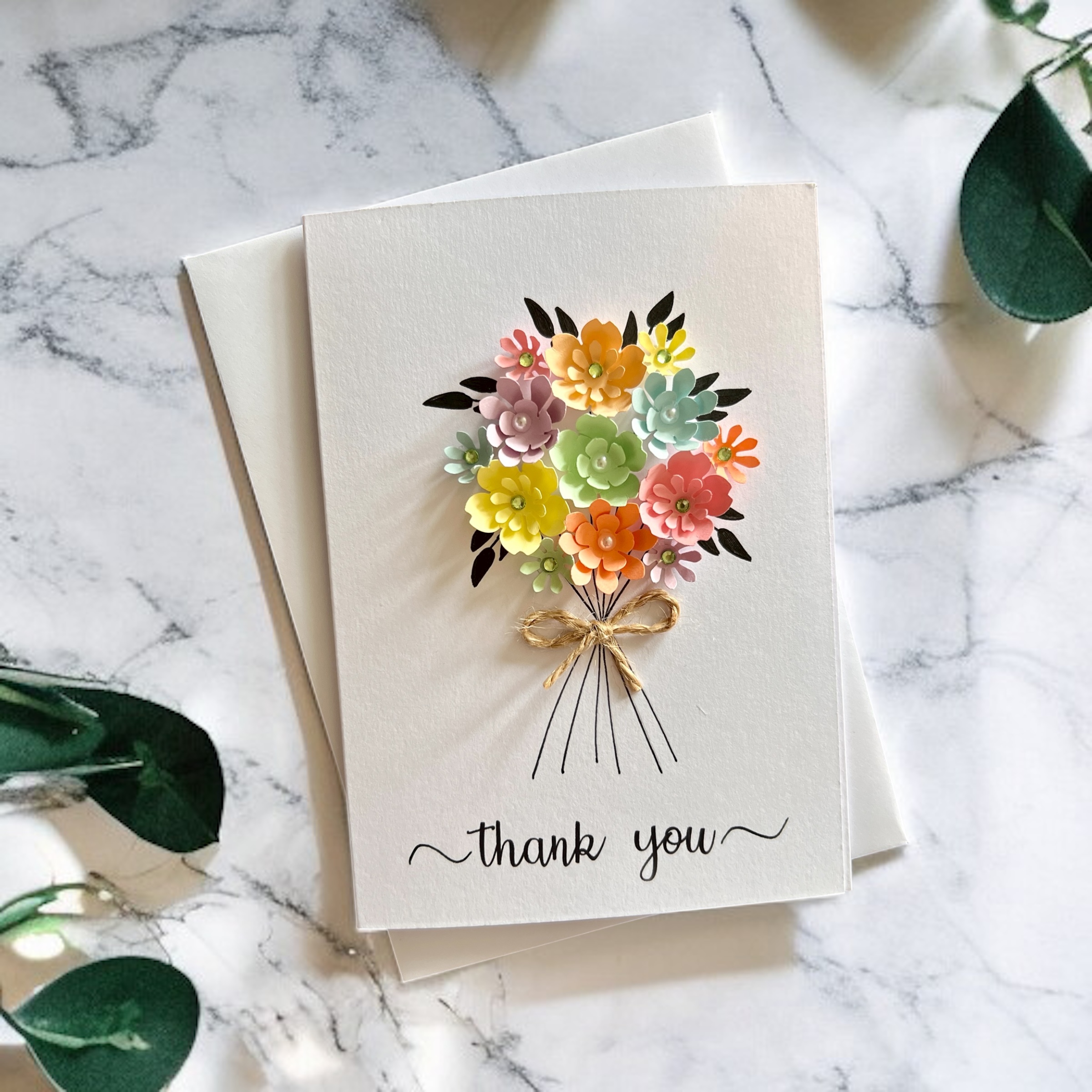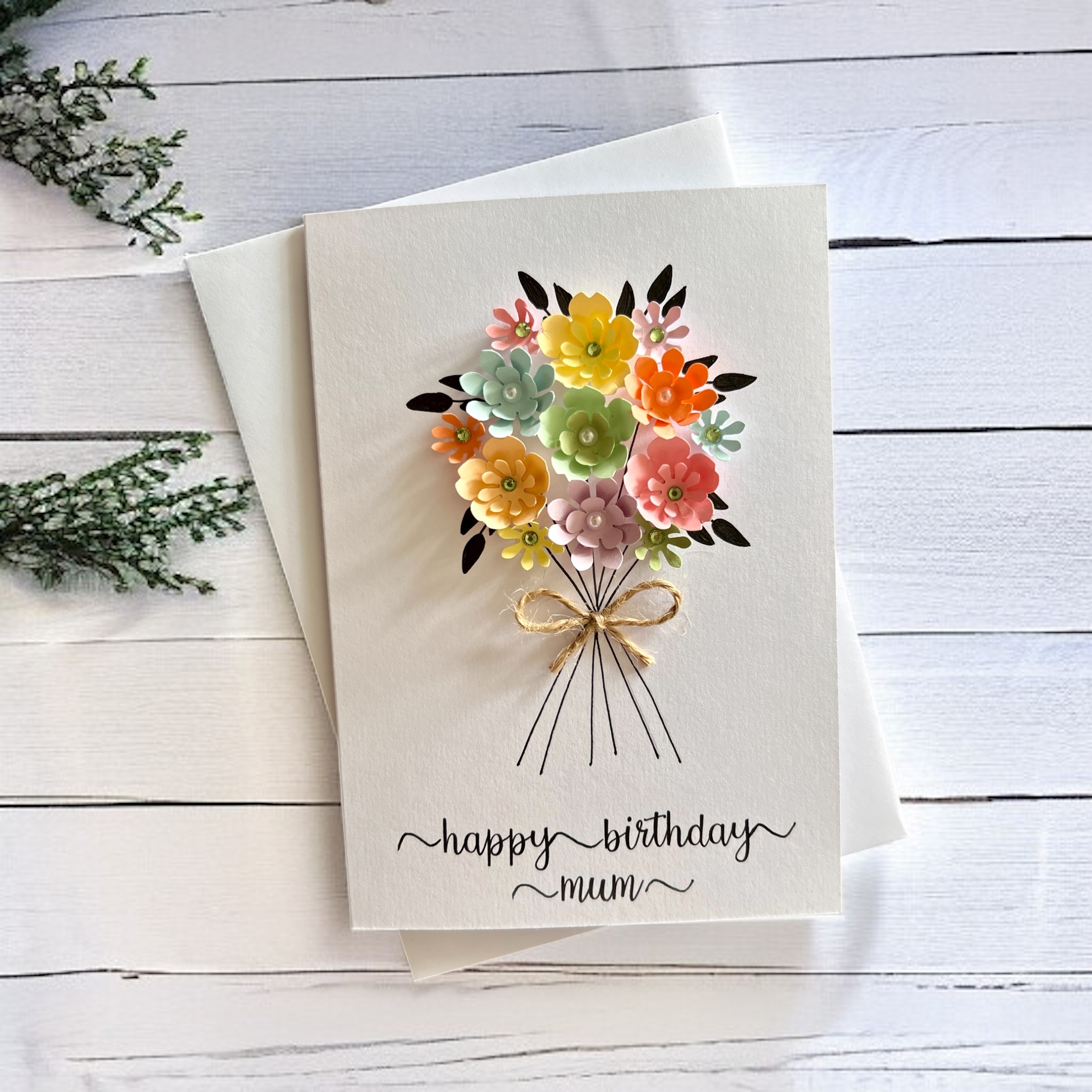 Looking for a truly special card to celebrate a birthday, anniversary, or to simply say “thank you”? This beautiful, handmade 3D floral card is designed to bring a smile. Each flower is carefully crafted and arranged by hand to create a unique bouquet that pops with colour and love.