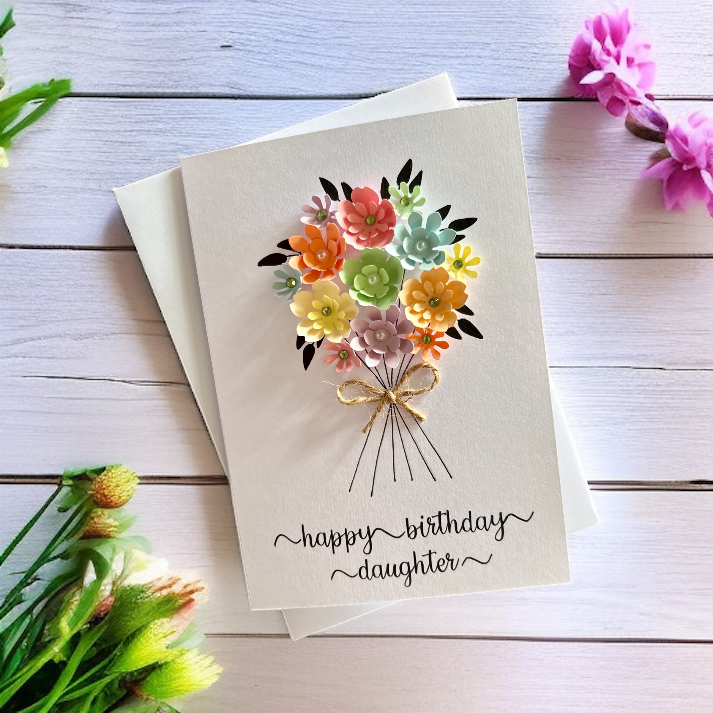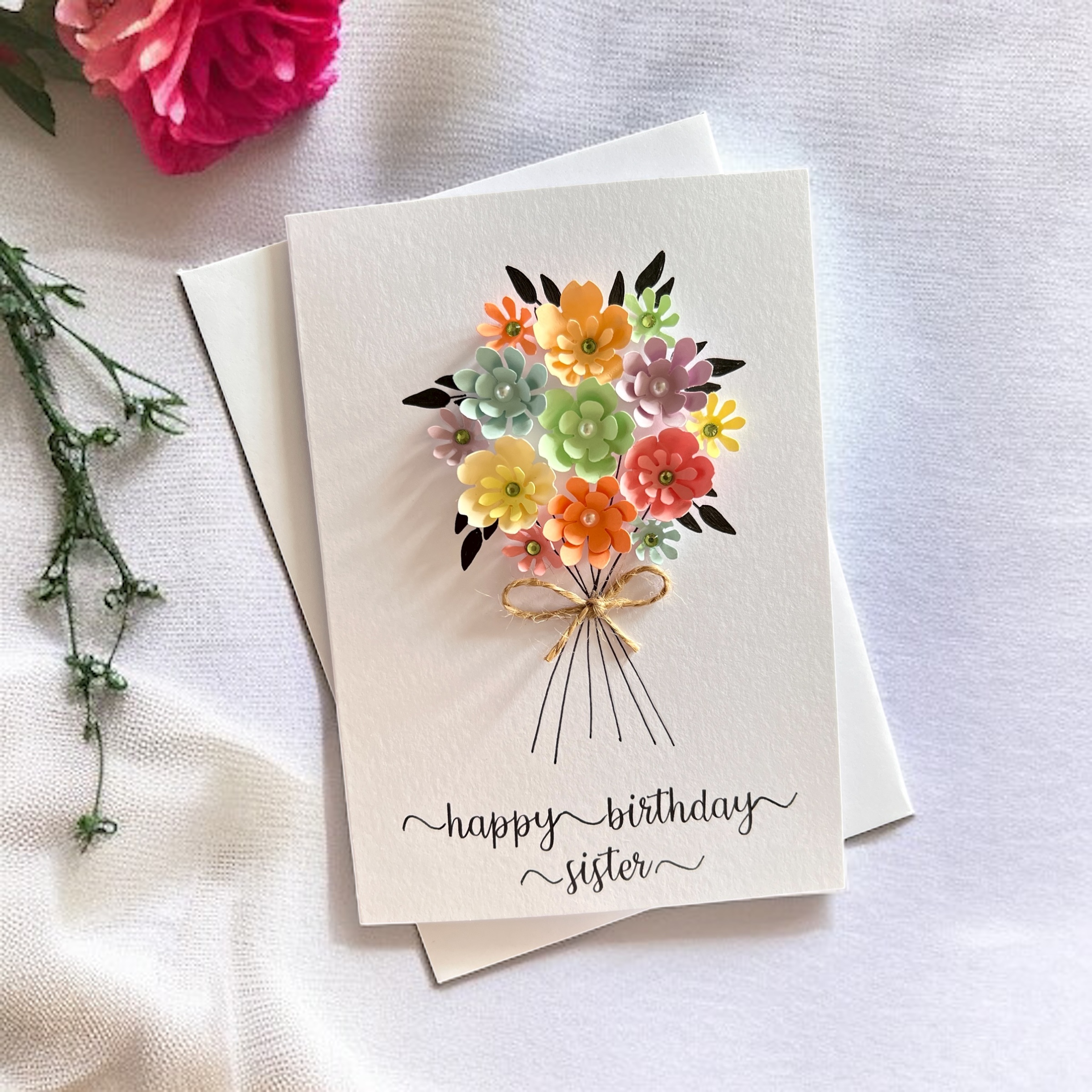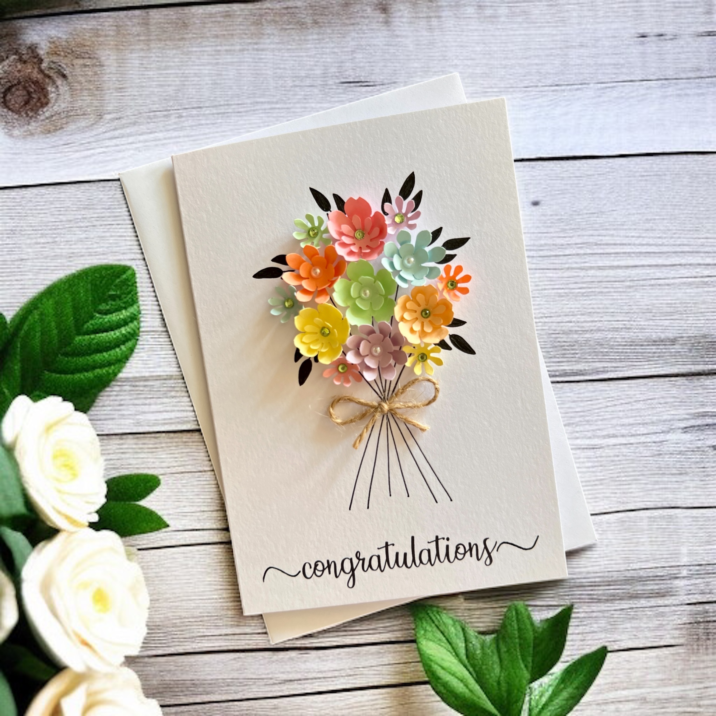 Looking for a truly special card to celebrate a birthday, anniversary, or to simply say “thank you”? This beautiful, handmade 3D floral card is designed to bring a smile. Each flower is carefully crafted and arranged by hand to create a unique bouquet that pops with colour and love.