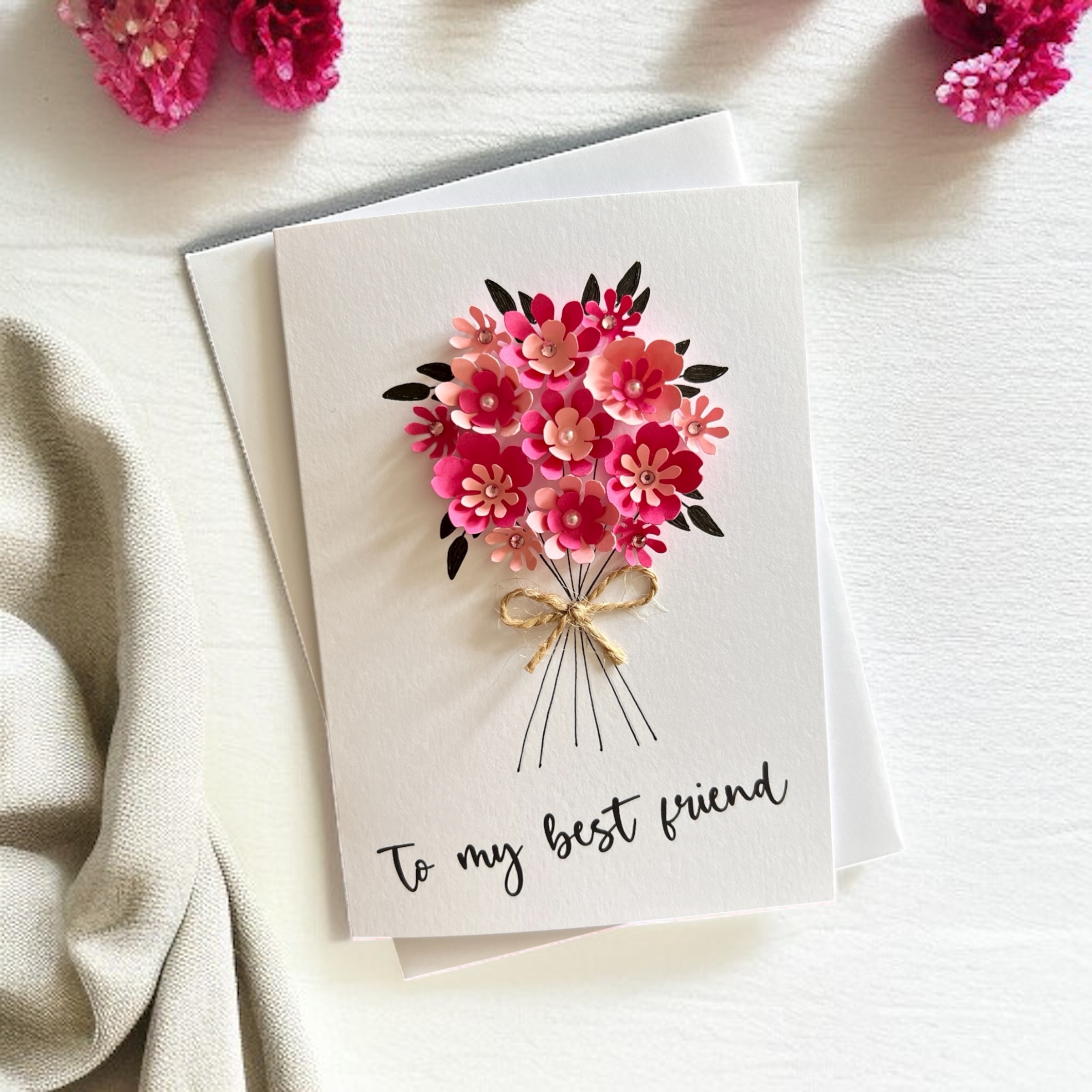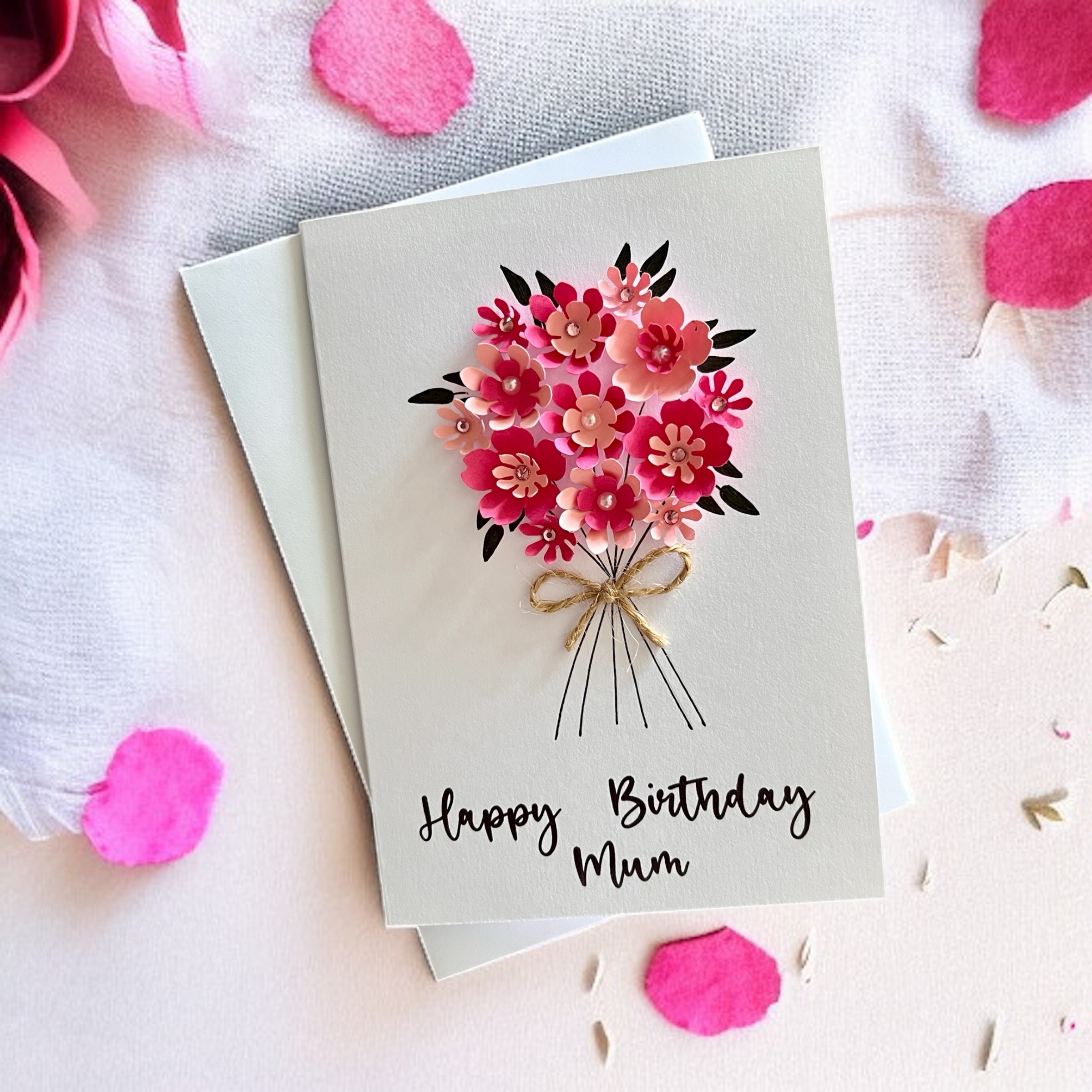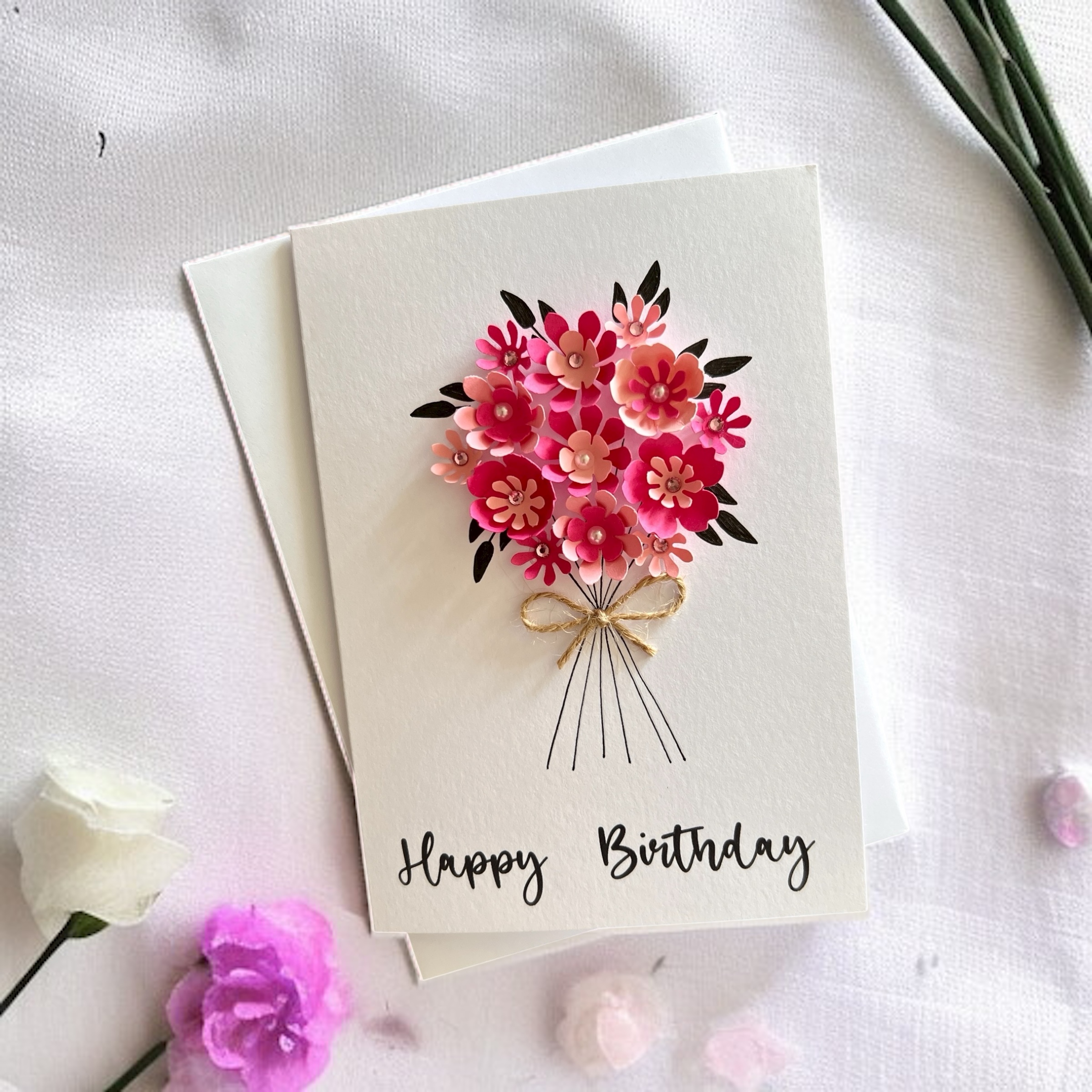 ✨ Share love and joy with this handcrafted 3D floral card, featuring delicate light pink and pink paper flowers. Beautifully designed to make birthdays and special occasions truly unforgettable.