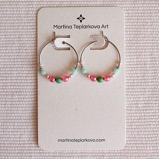 These hoop earrings feature beautiful glass beads. Hypoallergenic and durable. Available in various designs.