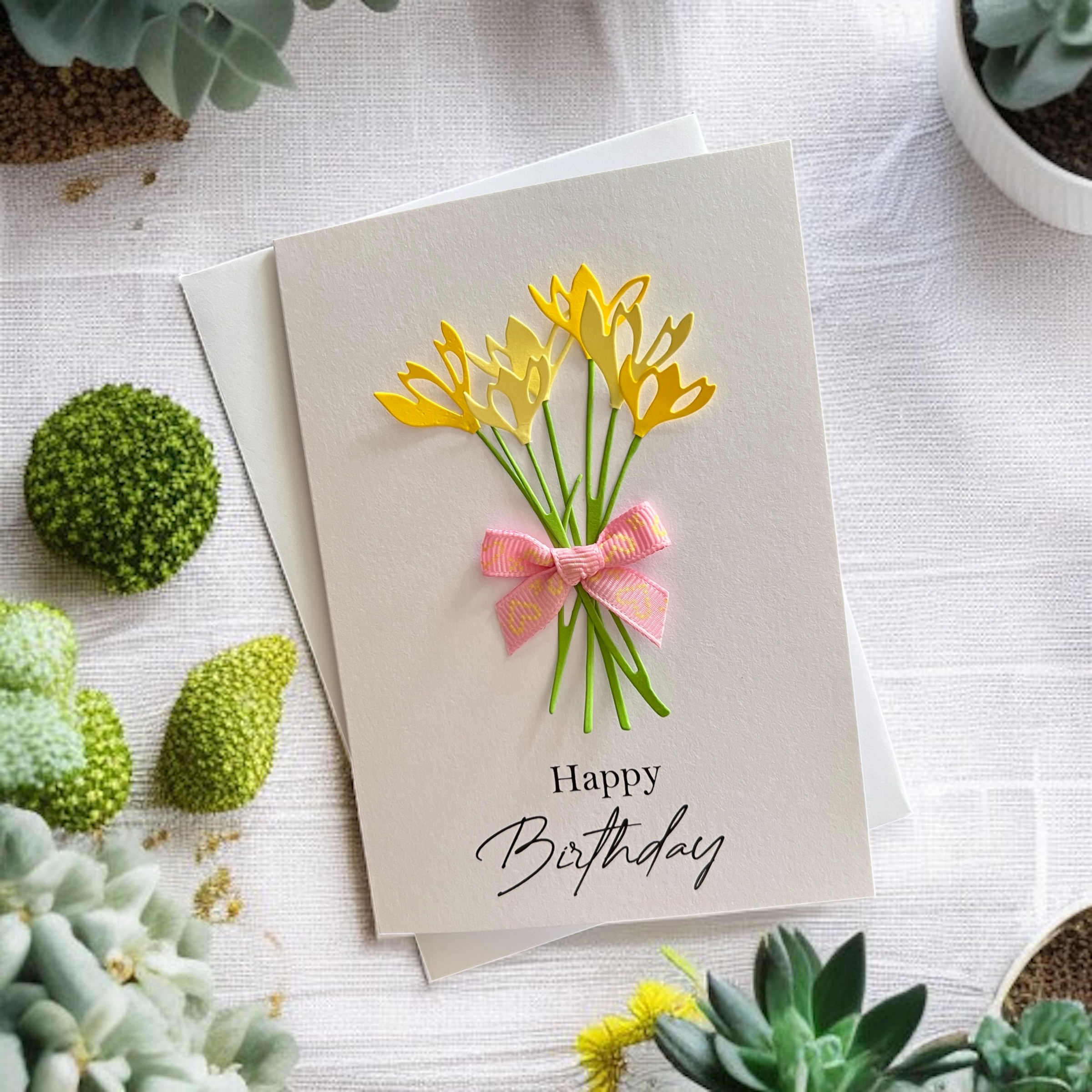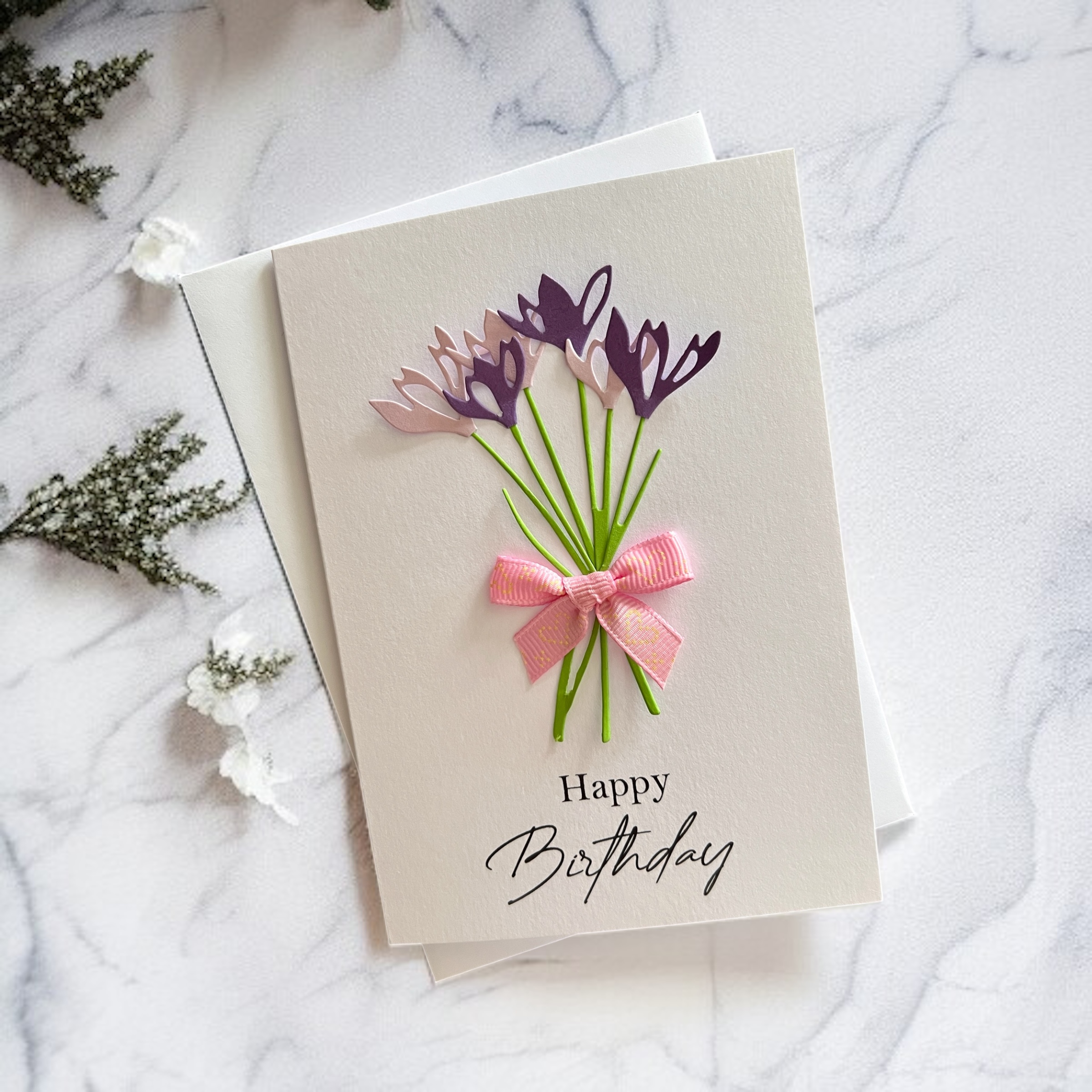 Brighten someone’s special day with this handmade snowdrops birthday card, crafted with care and love.