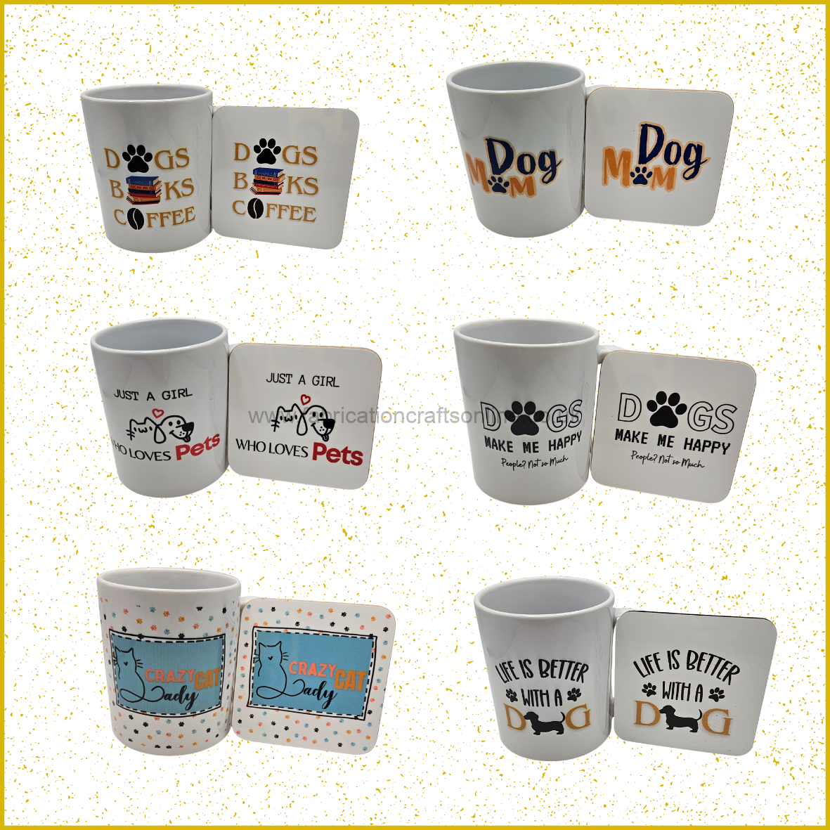 These handmade themed mugs feature fun and meaningful designs.